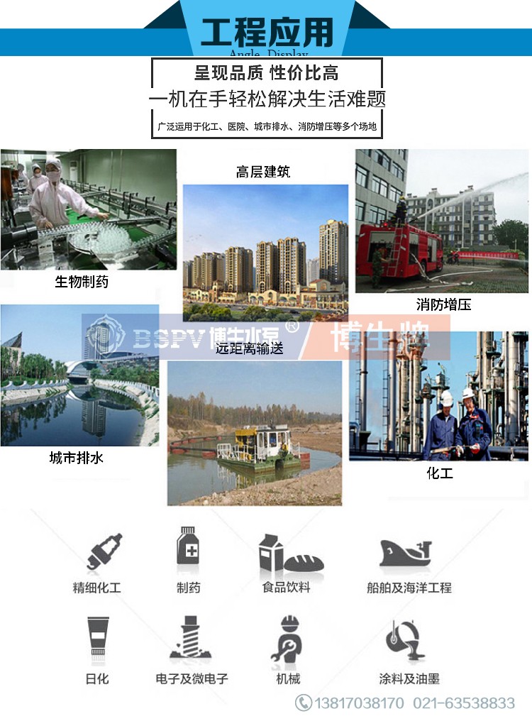 環境保護:工業污水、生活污水、含有固體顆粒及短纖維的污泥濁水的輸送,特別使用于油水分離器,板框壓濾機設備等。