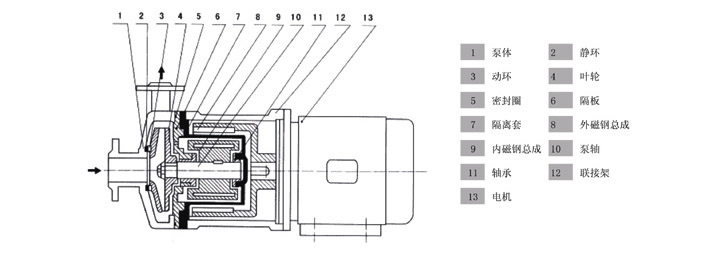 CQF型泵符合Q/YGB01-2002(小型磁力傳動離心泵)標準,產(chǎn)品以增強聚丙烯或聚偏二氟乙烯為主要材料,能耐大多數(shù)的有機和無機酸,堿和鹽。也適于在室外大氣中暴露。對應(yīng)力腐蝕破裂的抗蝕性良好。
