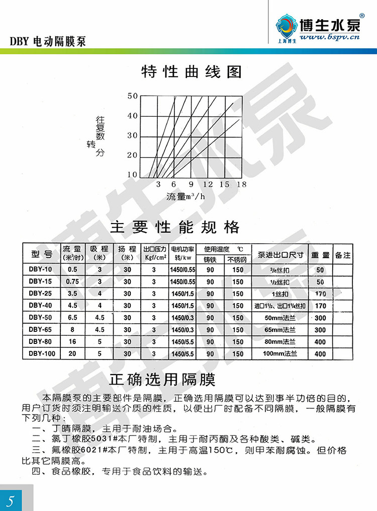 博生公司生產(chǎn)的上海博生DBY-15型電動(dòng)隔膜泵是一種新型的泵種,近年來(lái),由于在隔膜材料取得了突破性的進(jìn)展,國(guó)際上越來(lái)越多的工業(yè)化國(guó)家要用此種型式的泵,上海博生DBY-15型電動(dòng)隔膜泵代替部份離心泵、螺桿泵,來(lái)應(yīng)用于石化、陶瓷、冶金等行業(yè)。